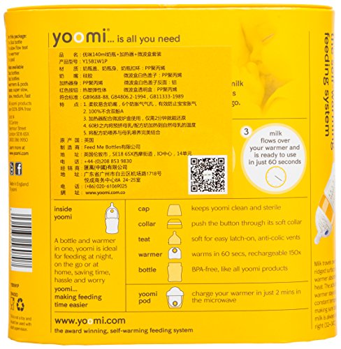 -. Feature : Warms feed in 60 seconds / Rechargeable warmer x150 / 2 minute charging pod (compatible with 750-1000 watt microwaves) / All yoomi parts interchangeable across the range / Tested to rigorous safety standards