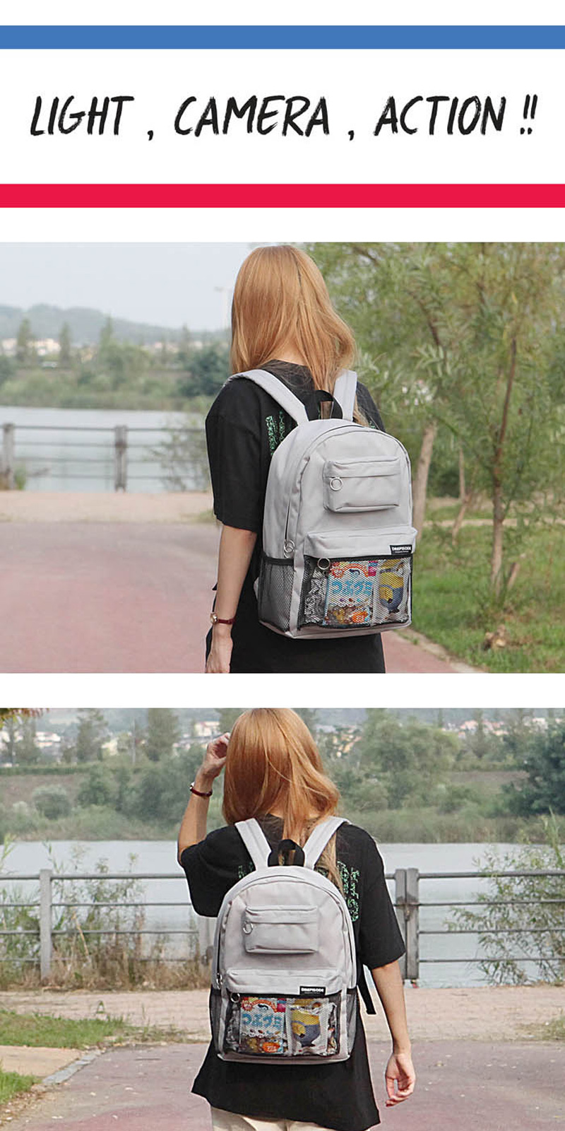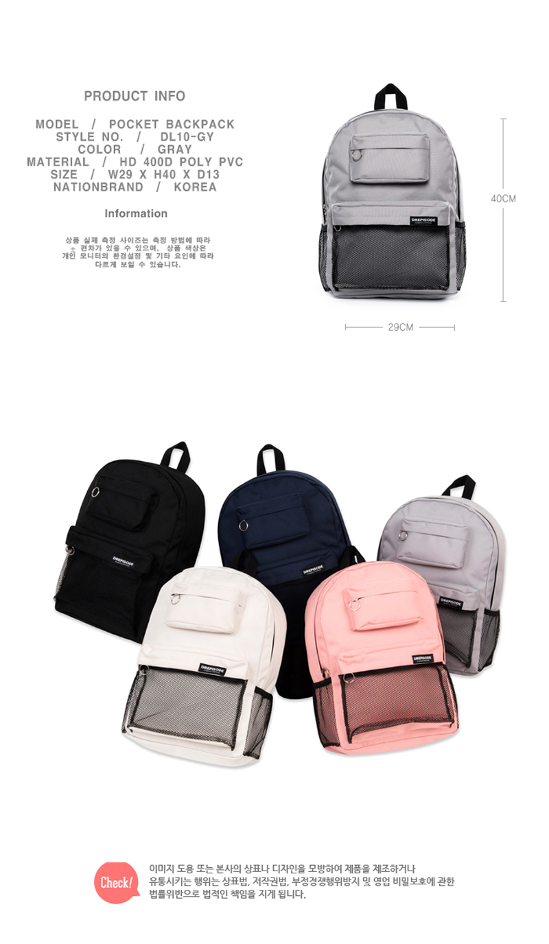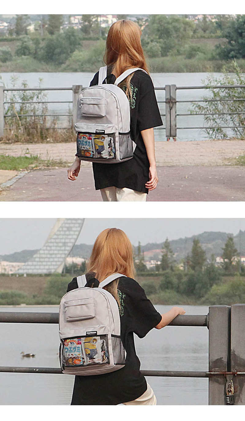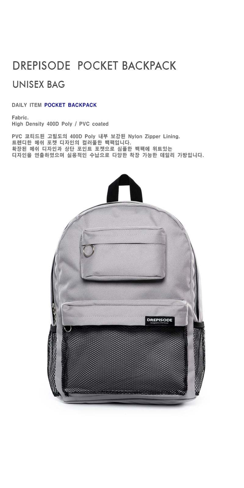 트렌디한 메쉬 포켓과 상단 포인트 포켓으로 심플한 백팩에 위트있는 디자인을 연출하였습니다.