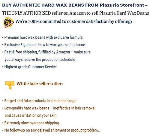 IMPORTANT NOTIFICATION: Plazuria storefront is the only authorized seller to sell authentic Plazuria Hard Wax Beans on Amazon. Other sellers such as ABCsell and Heather Fisher SS are actually selling counterfeit - low quality wax beans ineffective in hair removal and cause skin irritation, though in very similar package. Be sure you purchase from Plazuria for super-quality hard wax beans with exclusive natural and mild formula.