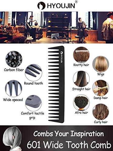 HYOUJIN 601 Black Carbon Wide Tooth Comb,100% Anti static 230℃ Heat Resistant,Detangling Comb,Detangler Hair Comb for Long Wet hair Hair...