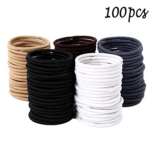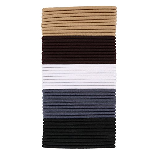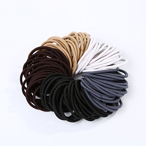 - Multicolor hair bands – Come with 5 pieces of different colors cotton stretch seamless hair bands, each color have 20 packs; Colors include: dark brown, blonde, grey blue, white and black.