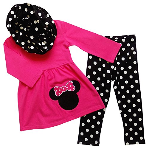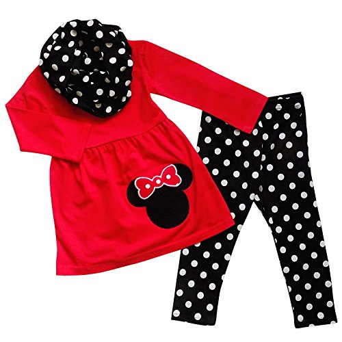 Tunic top with mouse detail. Pants have elastic waist for perfect fit. Infinity scarf in matching print.