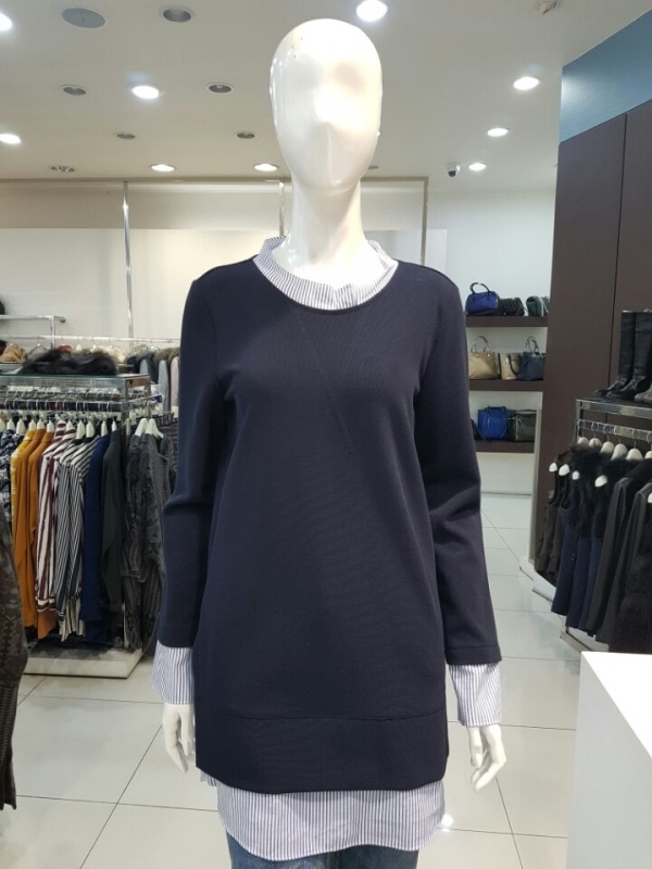 스트라이프 배색 롱티셔츠