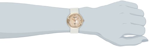 -. Feature : 4 genuine diamond hour markers / Clean, Mother-of-Pearl, dial / Rose-tone case with a White, satin, strap and Rose-tone buckle / Swiss Quartz movement / Water-resistant to 10 M (33 feet) / 4 genuine diamond hour markers / Clean, Mother-of-Pearl, dial / Rose-tone case with a White, satin, strap and Rose-tone buckle / Swiss Quartz movement / Not water resistant