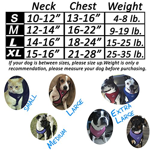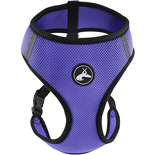 Studio : Day to Day Imports Inc. Publisher : Day to Day Imports Inc. Binding : Misc. Product Description This durable mesh harness is the number one choice in comfort and control for your pet. The lightweight, breathable, and padded material will make your pet very happy whether they are walking down the street on a leash or running in the park on their own. The adjustable straps allow for a comfortable custom-fit for your pet while giving you more control than a traditional collar. Available in many sizes and color options, you can be sure that you will find the perfect style for your friend! The other pets will be jealous, the other owners will flock and swoon at your excellent taste in functioning fashion, and you will be happy knowing that you bought the absolute best choice in harnesses. Large Dimensions: 19-23 inch chest / 13-15 inch neck (for dogs 11-18 pounds). Color - Purple. 0