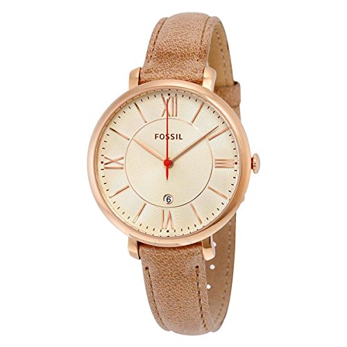-. Title : Fossil Women's 36mm Polished Rose Goldtone Jacqueline Watch With Sand Leather Strap