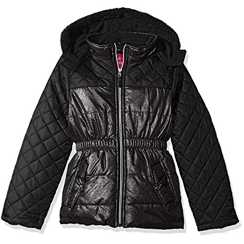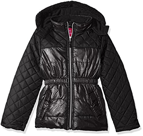 Pink Platinum girls quilted puffer mixed with allover spray foil