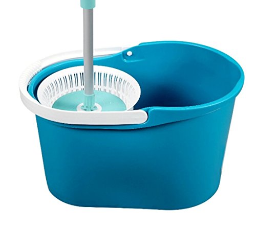 - Feature : 1, Super-Absorbent Microfiber Mop Head Leaves No Streaks When Used As Wet Mop. You Can Also Use It As Dry Mop To Pick Up Hair and Dust. The Microfiber Mop Heads Are Machine Washable ; / 2, Unlike Other Spin Mops (like Mopaway): NO Foot Pedal Needed As This Item Has The Patented Spin Cycle Technology that Spins The Mop Dry when Pushed Into the Spinner ; / 3, Super absorbent microfiber mop head (14" in diameter, 2 included) cleans 3X better than cotton, dries floor instantly, and leaves no streaks. Machine washable mop heads last 6-12 months. Can also be used as dry mop to pick up hair and dust. Swivel joint pivots 180° and rotates 360° to clean under furniture and along baseboards ; / 4, Use high quality materials ,Bucket material: PVC ;Handle material: Stainless Steel ; / 5, General Sizes Bucket size:18.6'' x 9.6'' x 11.4'' ;Handle size: 50''+1.8'' ;