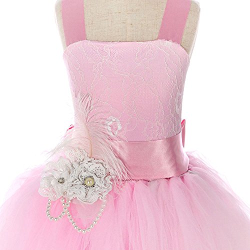 Sash ties back for waist adjustment.At the front, clips a detachable flower brooch which is decorated with ostrich feather and artificial pearls.