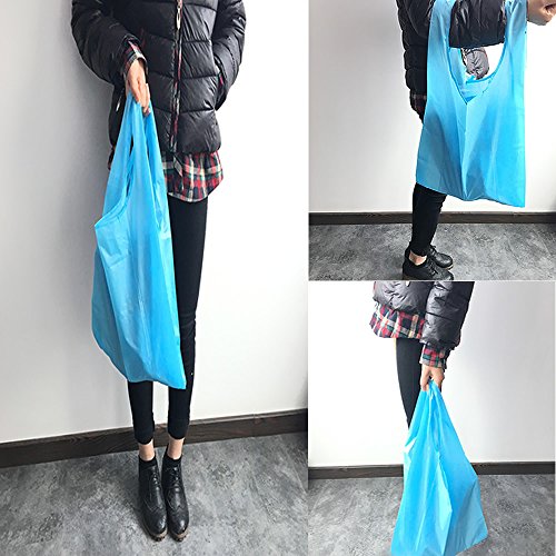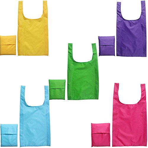 HUELE Set of 5 Reusable Shopping Tote Travel Recycle Bag - Foldable to Save Space -5 Colors