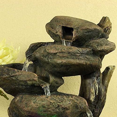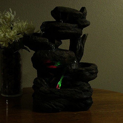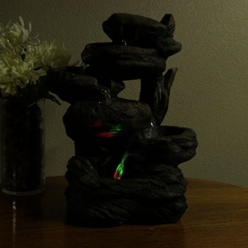 Includes a quiet electric recirculating electric pump to better help with relaxation, multi-color LED lights to illuminate the fountain, and transformer that plugs into a standard indoor electrical wall outlet so you have everything you need to run it right out of the box. Just add water!