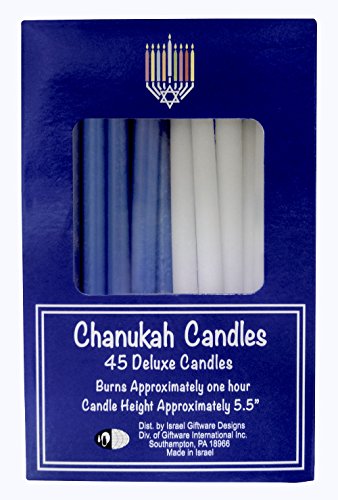 Chanukah Menorah Candles Blue & White 45 Per Box Made in Israel