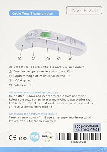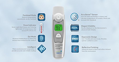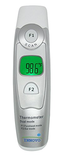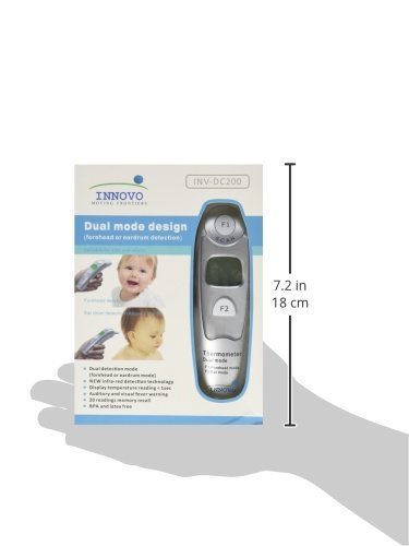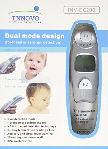 We want to make a thermometer that is capable of accompanying your child from baby to adulthood. That is why the Innovo Dual mode infra-red thermometer INV-DC200 is designed to be BOTH an ear thermometer (recommended for age >1) AND a forehead thermometer (recommended for all ages), offering users the freedom to choose between two modes. Using the latest infra-red scanning technology, the INV-DC200 has proven to be extremely reliable and accurate during clinical trials. Only available to doctors and medical professionals previously, we are now bringing this technology to you. Try out the #1 trusted thermometers by Doctors.FEATURES: