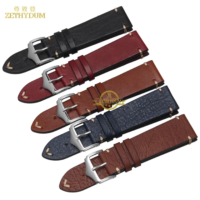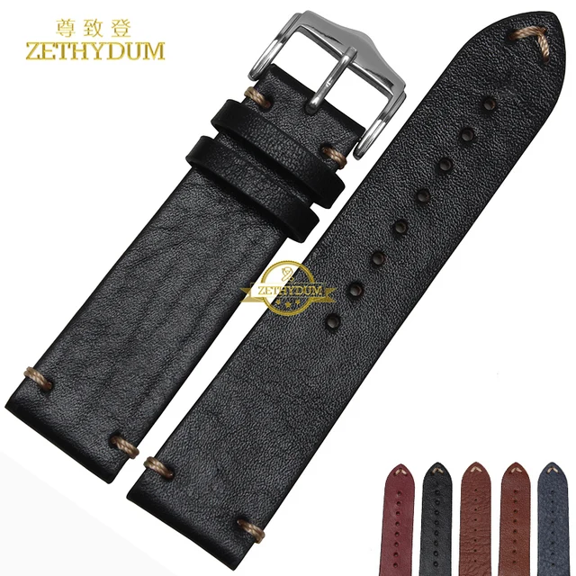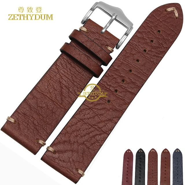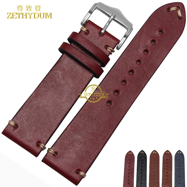 [해외]수제 정품 가죽 팔찌 손목 20 22 미리메터 시계 스트랩 젖빛 손목 밴드 시계 줄 스레드 스티치 팔찌