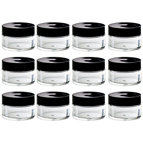 Clear Thick Wall Acrylic Travel Refillable Pot Container Jar - .50 oz / 15 ml (12 pack) + Travel Bag for Samples, Balms, Makeup and Cosmetics, Salves, Airtight