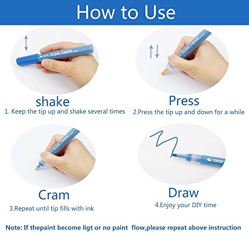 - WIDE USAGE : These acrylic art paint markers pens working well on most surface, create your stunning masterpieces on rocks, paper, canvas, wood, brick, metal, plastic and fabric. Just be sure to give them some drying time!
