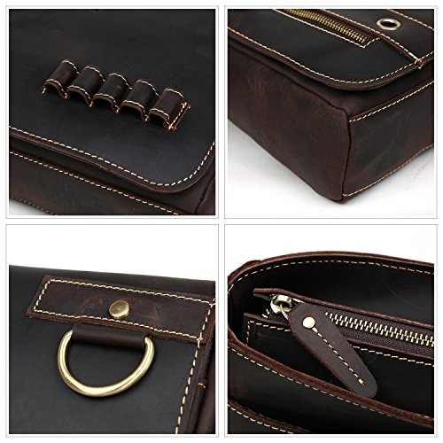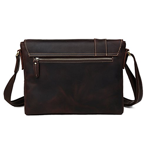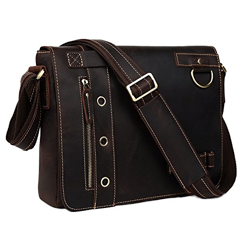 -. Feature : Dimensions: 13" l x3.1" w x9.8" h;Free gift PU leather pencil case, get promotion code below / Made by Top quality Crazy Horse cow leather, high quality and durable!;A casual messenger bag with style and ease. / Large inside space: laptop compartment for 13" laptop, large enough to store you ipad, documents, pens, cell phone, wallet ,files, books etc. / This bag consists of three part: an adjustable shoulder strap, a special flap and a main compartment / Fashion Design Perfect satchel bag for daily pack, school and travel;Super cool and fashionable gift for everyone