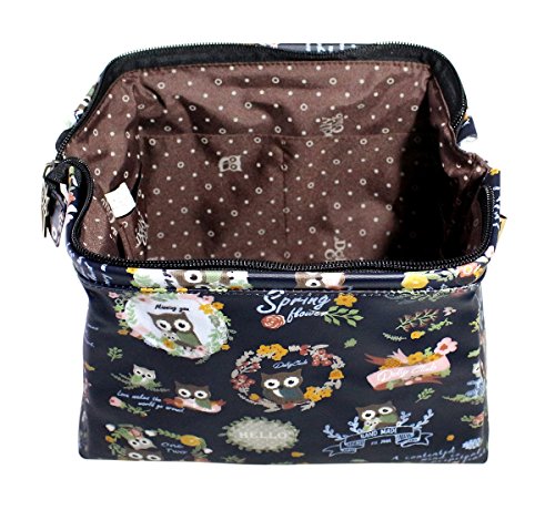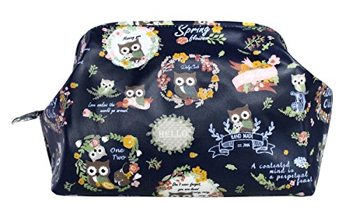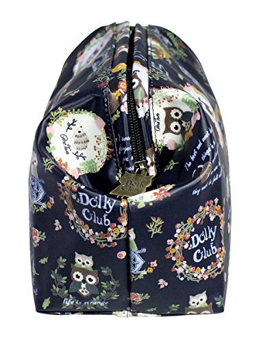 Dolly Lovely Waterproof Toiletry Cosmetic Case Accessories Bag- Owls and Flower Wreaths- Navy Blue