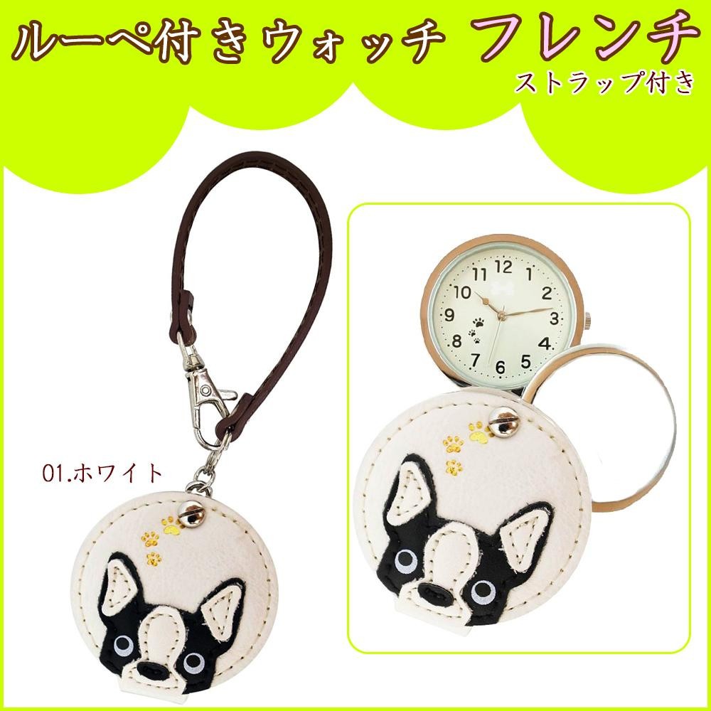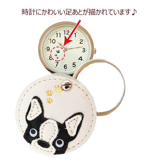 あると便利な時計とルーペを、かわいいフレンチブルドッグのケースに収納。ストラップが付いているのでバッグなどにつけて持ち歩けます♪ |