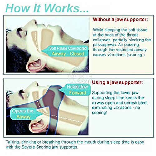 -. Feature : YOU CAN FINALLY SINK INTO A PEACEFUL SLUMBER: With this set of 2 anti-snore chin straps, you get instant improvement in your sleep apnoea or snoring problem. Our guard can keep your mouth closed while you sleep, preventing symp of dryness. With its super-sturdy construction, it holds your jaw gently, but firmly in place. / ADJUSTABLE & SUPPORTIVE FIT- Anti-Snoring Chin Strap is designed to stay in place throughout the night without sliding off. The chin strap size is fully adjustable, enabling to perfectly adjust the strap according to your needs. / EXTREME COMFORT-Manufactured with soft, comfortable and flexible fabric, the anti-snoring device, will keep you staying comfortable at night-Won't feel itchy or irritate the face. / NATURAL INSTANT- SNORING RELIEF- Scientifically engineered to instantly stops snoring by holding your jaw firmly in place. The forward position of the jaw, combined with a closed mouth, effectively prevents the tongue and throat tissues from falling back and blocking the airway. This will result in a snore free night. BEST PART- This works with absolutely NO SIDE EFFECTS. / 100% SATISFACTION GUARANTEED- We are confident that you will love the Anti-snoring chin strap, and will find it extremely helpful and comfortable. If you don't absolutely love it, we guarantee you that we will reimburse you 100% of your order, as customer satisfaction is our #1 P.R.IORITY!
