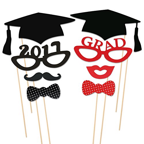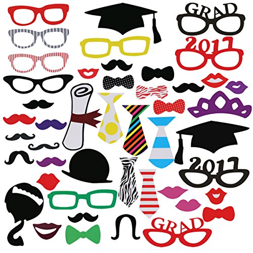 OULII Graduation Party Photo Booth Props, 2017 Graduation Party Decorations Party Favor for Wedding Party Graduation Birthdays Dress-up Accessories, ATTACHED TO THE STICKS,Pack of 46