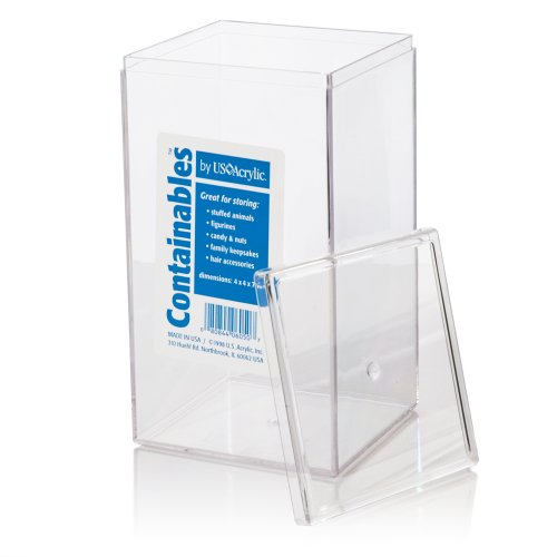- Feature : Great container for any room of the house or office! / Keeps things free of dust and breakage. Made in USA. / Holds items up to 7" tall. / Lid is a secure fit and is removable. / Dimensions: 4"L x 4"W x 7"H