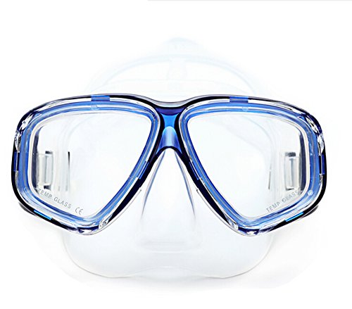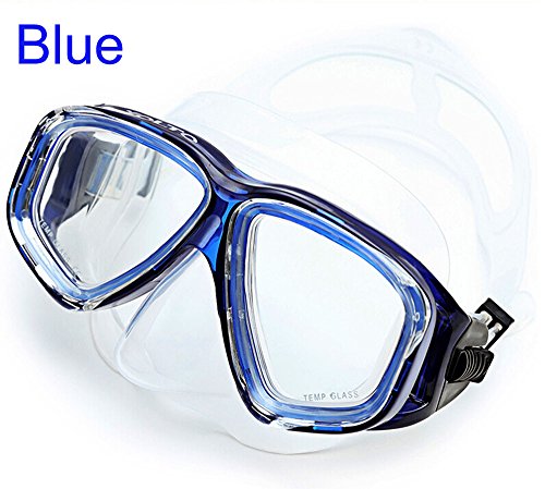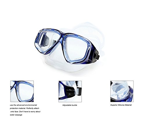 Globalstore® Snorkeling Diving Freediving Scuba Mask with 100% Silicone Skirt Tempered Glass Lenses Anti-fog Scratch-resistant Panoramic Mask for Adult Youth (Blue)