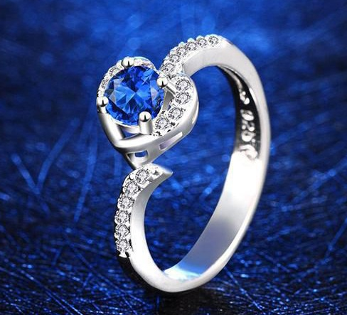 Cincin mewah love biru berlian Perhiasan safir sterling cincin perak The new blue diamond wedding rings women Jewellery sapphire sterling silver JEW SJA0846535262 GHJ qty000