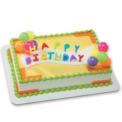 - Includes "Happy Birthday" candles and two clusters of neon balloons.