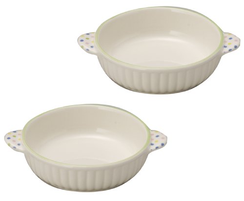원본상품명: 萬古? 水玉 丸グラタン皿 グリ?ンライン (小) 2個セット 14046-2