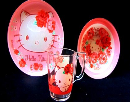 Luminarc "Hello Kitty Rose Passion" Unbreakable Tempered Glass 3-pcs Dish Set, Rose colored tableware is a perfect combination of modern design with the use of unique Color Vibrance technology. Manufactured from thermo- and shatterproof tempered material, it will serve for years without losing its shiny finish. The dinnerware set contains: dinner plate, mug and bowl. Cleaning and maintenance of this set require little effort, as it is microwave and dishwasher safe and is easy stackable to save up space at any kitchen. Young ladies will marvel at this new dinnerware collection and the biggest collectors will get ecstatic!Feature