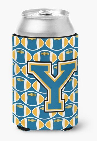 Caroline's Treasures CJ1077-YCC Letter Y Football Blue and Gold Can or Bottle Hugger, Multicolor