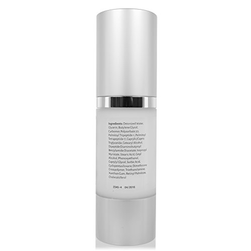 -. Feature : REJUVENATING ANTI-AGING MOISTURIZING CREAM - helps to restore your skin to a more youthful appearance by increasing your skins natural collagen production. Collagen is vital to supporting skin elasticity, firmness, and tone. / THIS LIGHTWEIGHT CONCENTRATED MOISTURIZER - keeps your skin hydrated all day. Enriched with Vitamins A & D3 to nourish your skin. / CONTAINS SUPER PEPTIDE MATRIXYL 3000, VITAMIN A & D3 - These super collagen boosting ingredients have been clinically proven to improve the look of your skin in 5 short weeks. Supports collagen production while reducing the look of fine lines and wrinkles. (No need to pay for Botox ) / CRUELTY FREE: Product not tested on animals, Vegan Formula, Paraben Free, Safe For All Skin Types / BEST FACE CREAM for Men and Women. Use on Face, hands and eyes for renewed youth.
