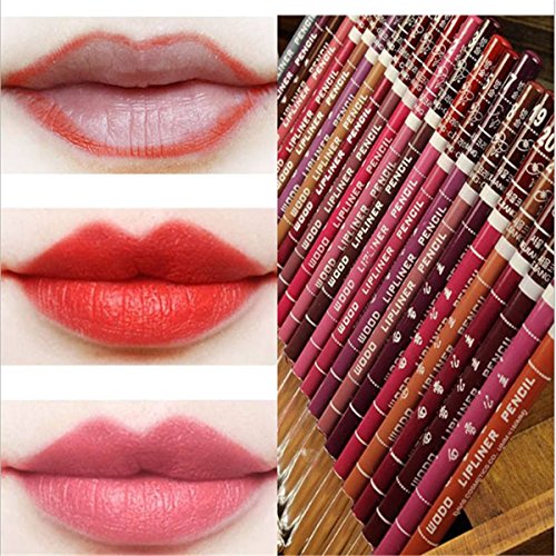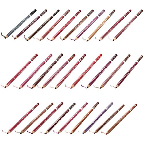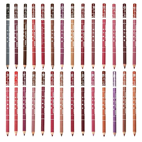 -. Feature : Portable design easy to carry. / Easy to draw a delicate thin line / Waterproof and long stay / Not blooming, not dry, maintain comfort all day / Package Included: 28x Lip Liner Pencils