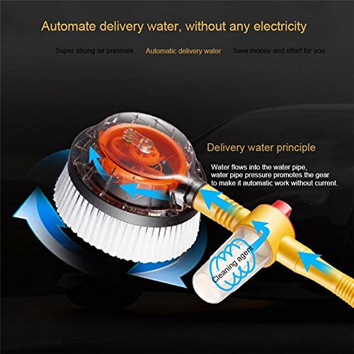 -. Title : Wisamic Non-Electric Rotating Car Brush 47" Long with Soap Reservoir for Car Safe Window Cleaner Home Cleaning Kit Garden Sprinkler