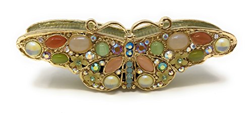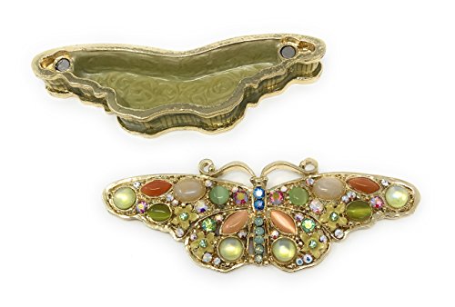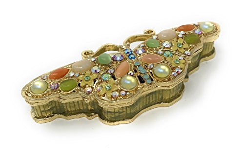 Enameled Gold Butterfly Trinket Box, With Colorful Cabochon Style Stones and Accented with Tiny Austrian Crystals, 3.25L