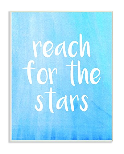 Stupell Home Décor Reach For The Stars Blue and White Wall Plaque Art, 10 x 0.5 x 15, Proudly Made in USA