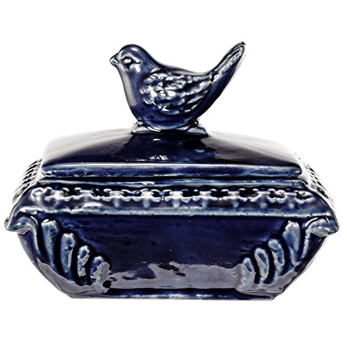 - This charming Cobalt Blue Ceramic Inlay Bird Keepsake box with lid, can be used as a candy dish, keepsake box, or display accent. It’s 100% ceramic and measuring 5.5x4x4.5" and makes a great gift for the home or garden. Jardin Collection by Nicholas Walker