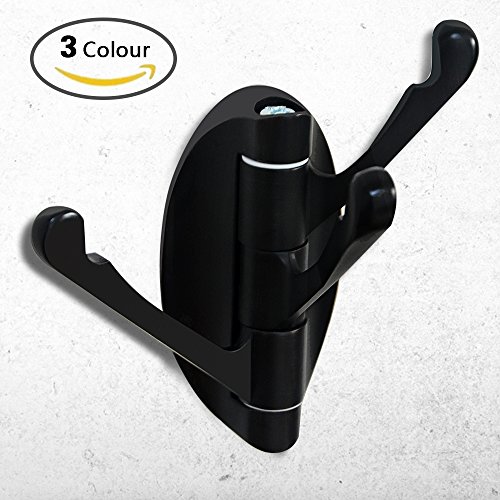 Sunnyac Solid Metal Swivel Hook Heavy Duty Folding Swing Arm Triple Coat Hook with Multi Three Foldable Arms forTowel,clothes Hanger (Black)