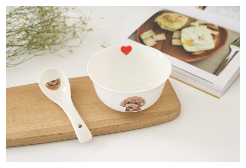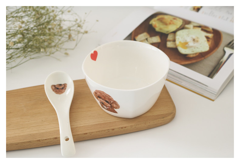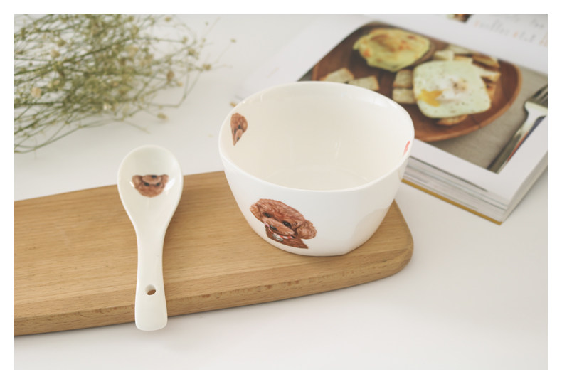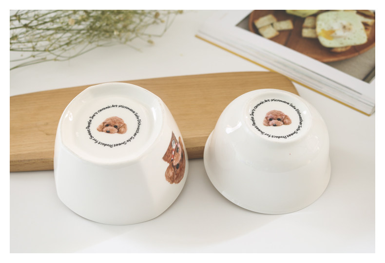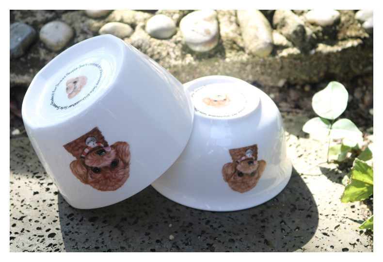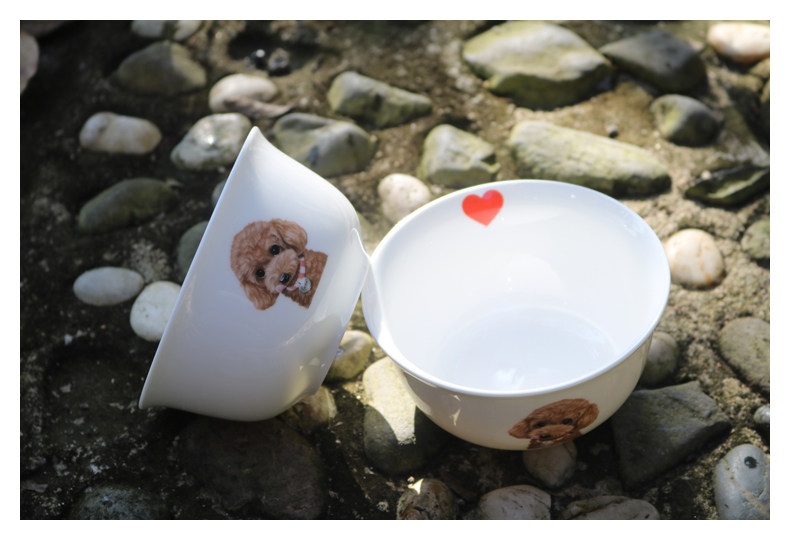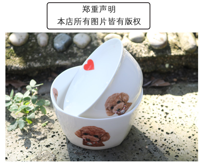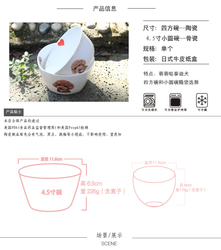 贵宾系列陶瓷碗家用米饭碗小圆碗可爱四方饭碗泰迪创意学生餐具碗