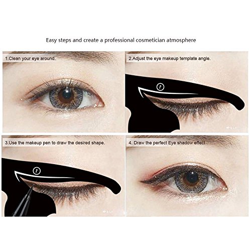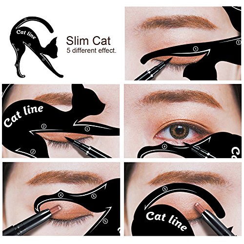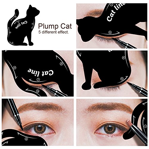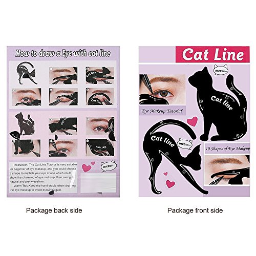 -. Feature : 100% BRAND NEW&HIGH QUALITY: Matte PVC Material is environmentally friendly materials, can be reused. / EASY TO USE: They completely change the way you do your make-up and save your time and efforts. perfectly fit each person's skin, easy to draw eyeliner shaped, cat eye and smokey eye makeup. / NEWEST DESIGN: Wise cat shape that you create different perfect cat line eye look.And you can DIY make 10 shapes eye makeup,Great for parties, or that special occasion, / INSTRUCTION: The Cat line Tutorial is very suitable for beginner of eye makeup.And you could choose a shape to match your eye shape which could show the charming of eye makeup. Then owing a natural and pretty eyeliner. Warm tips: keep the hand stable when drawing the eye makeup to avoid drawing again. / ITEM SIZE: 2 cat shape eyeliner stencil in each pack, silm cat: 87mm * 76mm , plump cat: 87mm * 70mm. Weight: 11g.