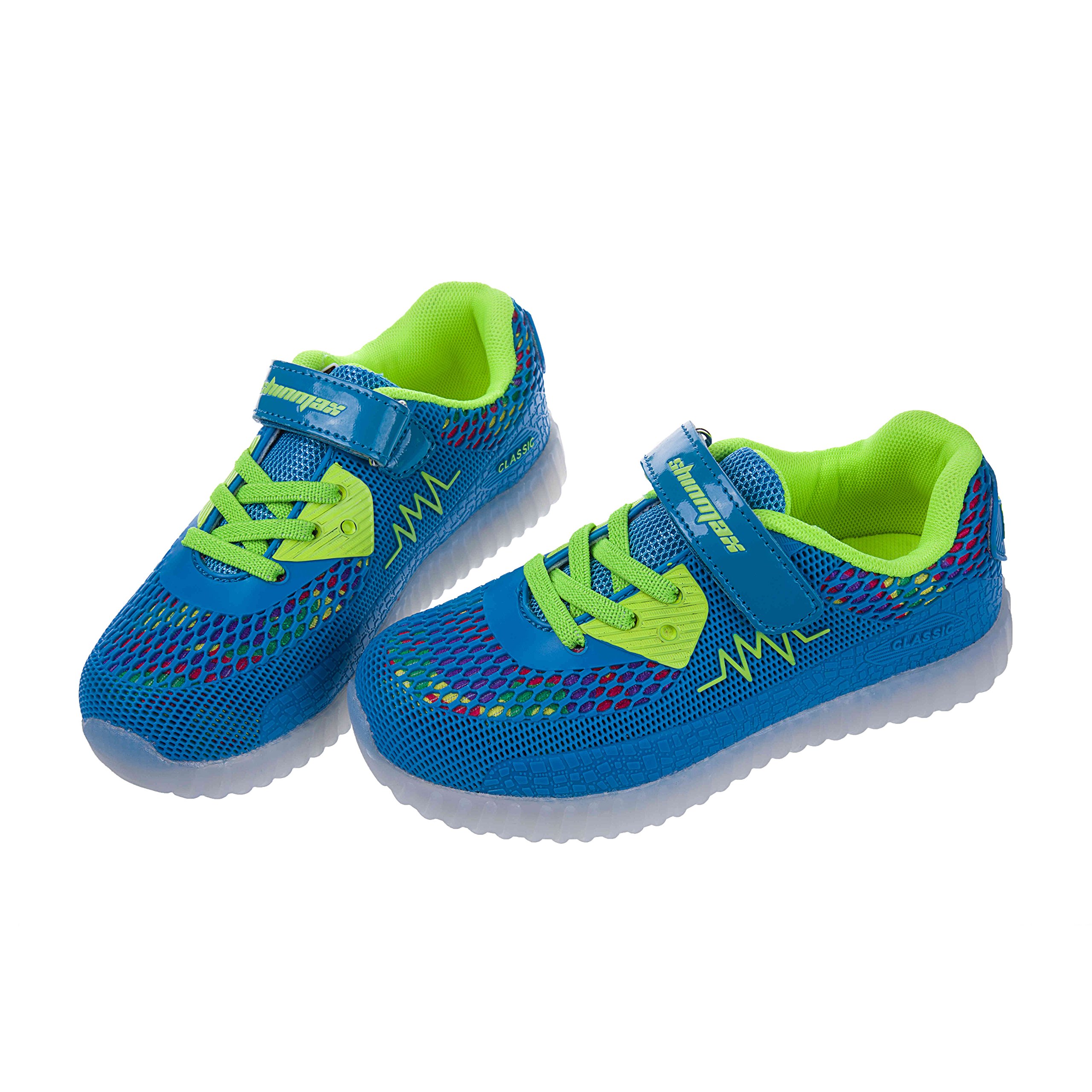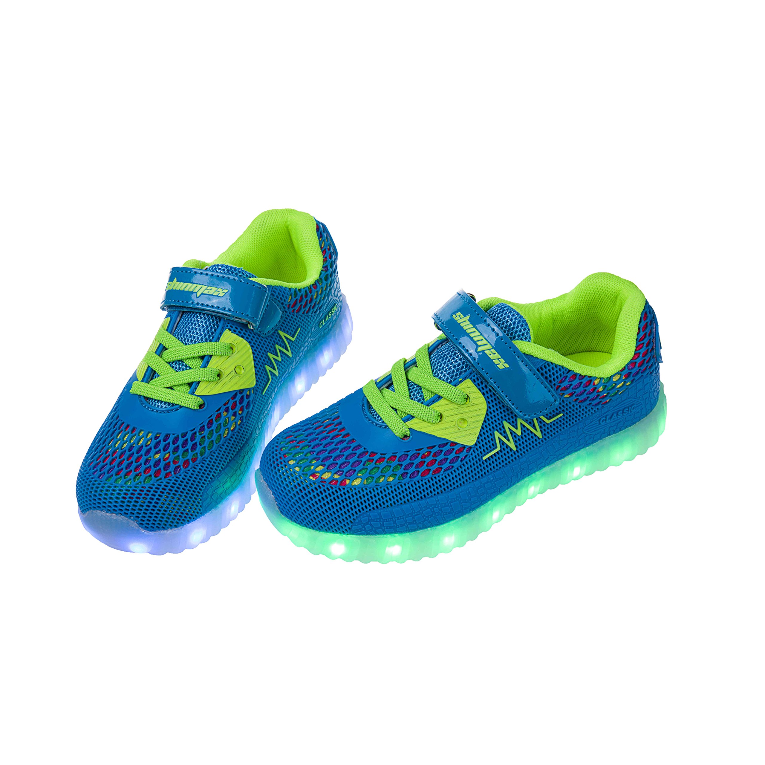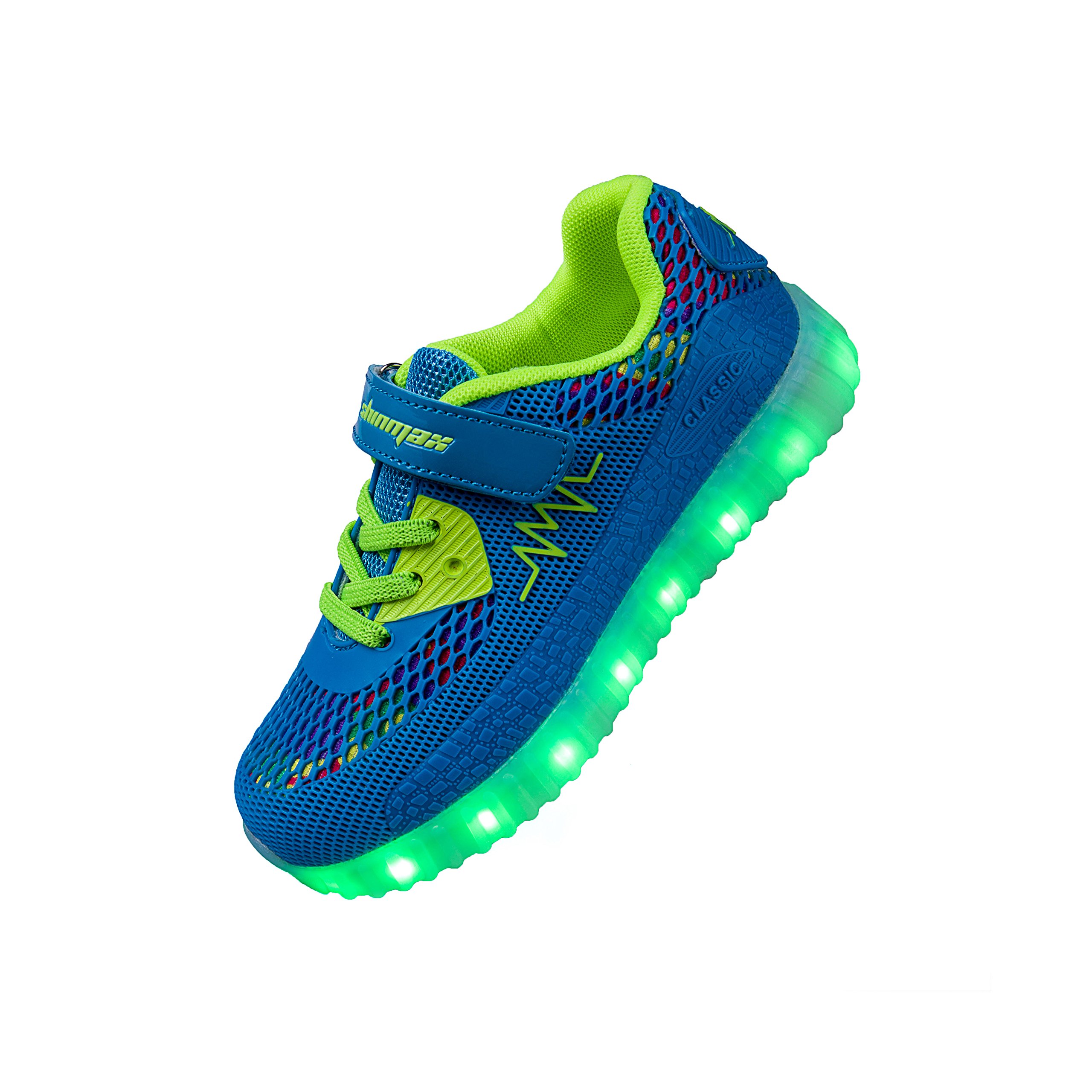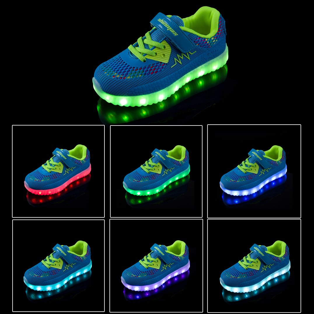 Turning off by long pressing the button, the shoe sole glows red during charging, and when charging finishes, it glows green