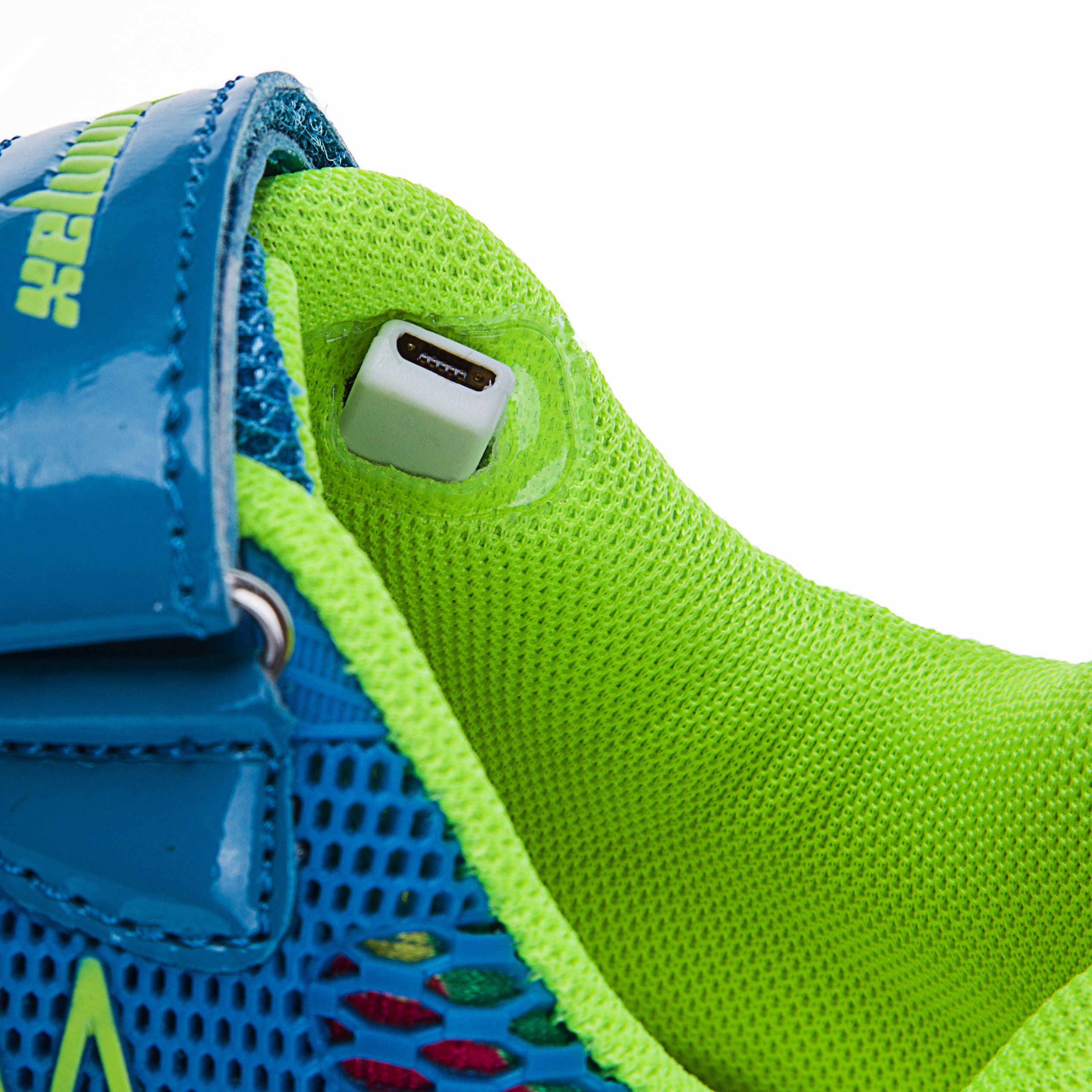 The switch is attached inside the tongue of the mouth of the shoe, pressing the red button changes the lighting pattern and color.