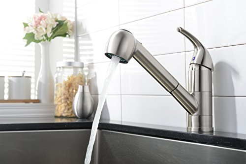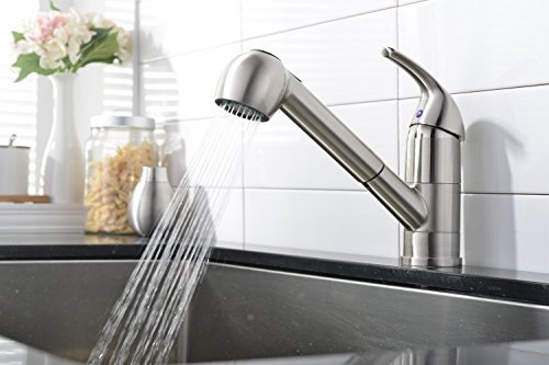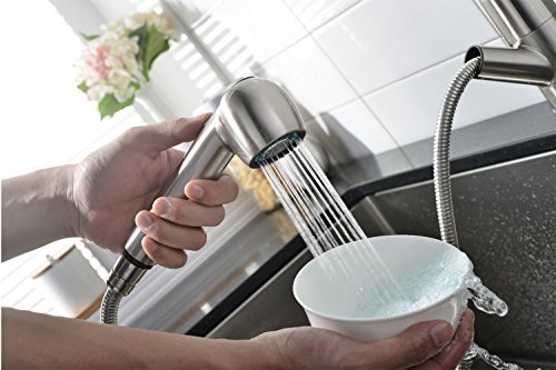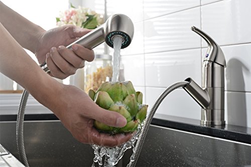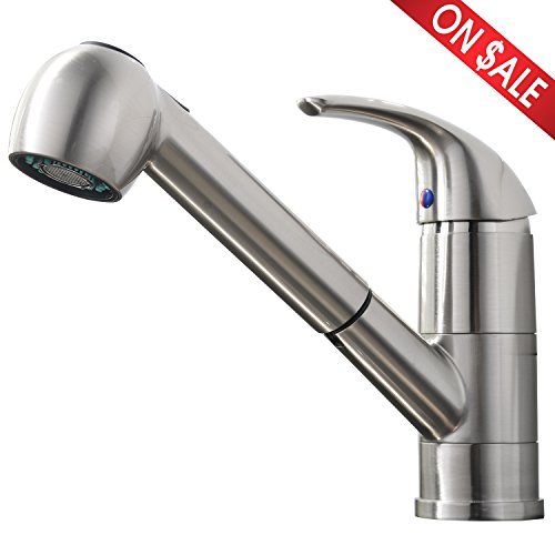 Comllen Commercial Stainless Steel Single Handle Pull Out Kitchen Faucet, Single Lever Pull Down Brushed Nickel Kitchen Faucets Without Deck Plate