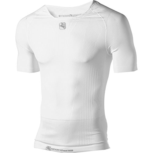 Studio : Giordana Publisher : Giordana Product Description Short sleeves on a base layer give you a bit more warmth on those transitional days, days when it is pretty cold at the start, and there is a promise of greater warmth. Never hurts to have a little extra protection. Besides, some like to attach their arm warmer grippers to the sleeves for a little more security there, too. The Giordana Super Light Short Sleeve Base Layer offers you all this, plus their tubular-knit, almost seamless build, and the pleasures of Dryarn, a new micro fiber, also found in their Over/Under base layer. Dryarn is a new kind of polypropylene fiber. One that moves moisture quickly and efficiently away from the skin, and is also feathery light, has excellent stretch, and anti-bacterial to boot. It will help create a comfortable microclimate between your skin and your jersey thanks to its properties, plus the zones of differing thicknesses (or meshiness) around the top. Thicker over your chest, but thinner on your stomach; thicker on the front of sleeves, thinner around back. The Giordana Super Light Weight Short Sleeve Base Layer comes in White. There's light elastic at the arms and waist. Sizes run from Small to X-Large. 0