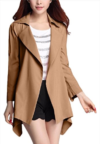 -. Feature : さらりと羽織ってお洒落にキメる、ショート丈のトレンチ風スプリング/オータム・コートの登場です。ビッグ・カラーがデコルテを綺麗にみせ、タックでふんわり仕上げたショルダーとロールアップ・スリーブが二の腕を華奢見せしてくれる、女性らしいフェミニンな印象を与えるアウターです。 / ウエストラインを意識したAラインのボディデザインと、アシンメトリーにカットされたフレア調の裾広がりが女性らしい美ライン・シルエットを作ります。前ボタンなしのオープンスタイルなので、体型を気にされる方やマタニティをお探しの方にもおすすめです。 / 肌ざわりの良い薄いベロア調素材なので、春秋はもちろん、さっと畳んでバッグにしまえばポータブルに夏の冷房対策や紫外線対策にも!インナーやストール マフラー スヌードなどのファッション小物を変えれば冬でもスタイリッシュに使えるシーズンレス・アイテムです。 / カジュアルなデイリーユースから、ビジネス、オフィス、通勤、通学、デートにも。襟付きできちんと感もあるのでフォーマルやちょっとしたオケージョン(パーティ、結婚式二次会、お呼ばれ、ママ会、女子会、イベント、季節行事等)にも。ショートパンツやタイト・スキニー・デニム、パンプスやブーツを合わせてあなただけのコーデを楽しんで下さい。 / 毎日着ても飽きのこない着まわし力の高いシンプルなデザイン。年齢問わず(20代、30代、40代、50代)季節問わず(春、夏、秋、冬)オールシーズン活躍すること間違いなしの便利アイテムです。 【カラー】ベージュ、ブラウン、カーキ、ブラック【サイズ 】M、L、XL 【素材】アクリル(80%)、ポリエステル(20%) 裏地:あり、付属品:なし