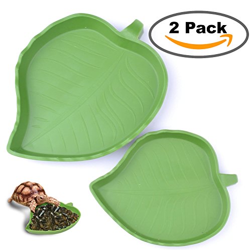 2 pack Leaf Reptile Food and Water Bowl for Pet Aquarium Ornament Terrarium Dish Plate Lizards Tortoises or Small Reptiles