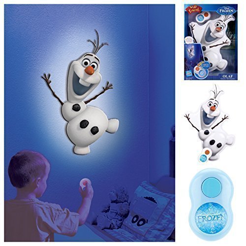 Watch Olaf come to life with this Disney Frozen Olaf interactive character wall light. Designed with animated features this light is synchronized with phrases as it features the charming loveable snowman. Easily mounts to wall and operates with remote control. Over 13" tall, this Frozen character light is a perfect compliment to any child's room and provides hours of interactive fun. Ages 3+. Batteries included.Feature