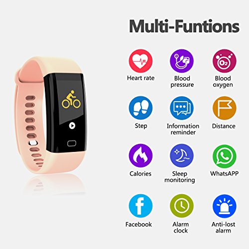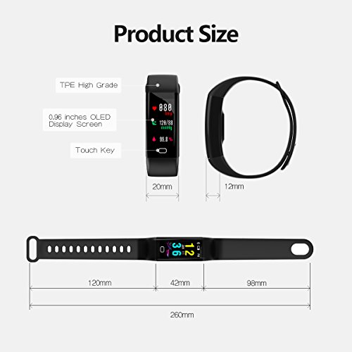 The main function of fitness tracker. Blood pressure and blood oxygen values: Automatically measure your blood pressure(including systolic blood pressure and diastolic blood pressure) and blood oxygen values.