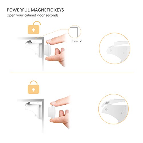 Baby Safety Magnetic Cabinet Locks Set: 1. Our Safety Locks with powerful magnetic key is suitable for almost all types of cabinets and drawer, and other furniture, for the purpose of preventing child from opening the drawers to reach medicines or sharp tools inside.